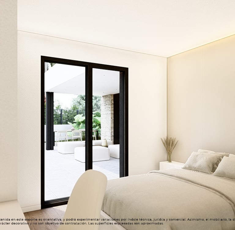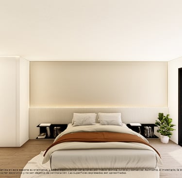 El dormitorio principal se concibe como un espacio de descanso y privacidad, con vestidor y baño propio, diseñado para ofrecer el máximo confort y tranquilidad.