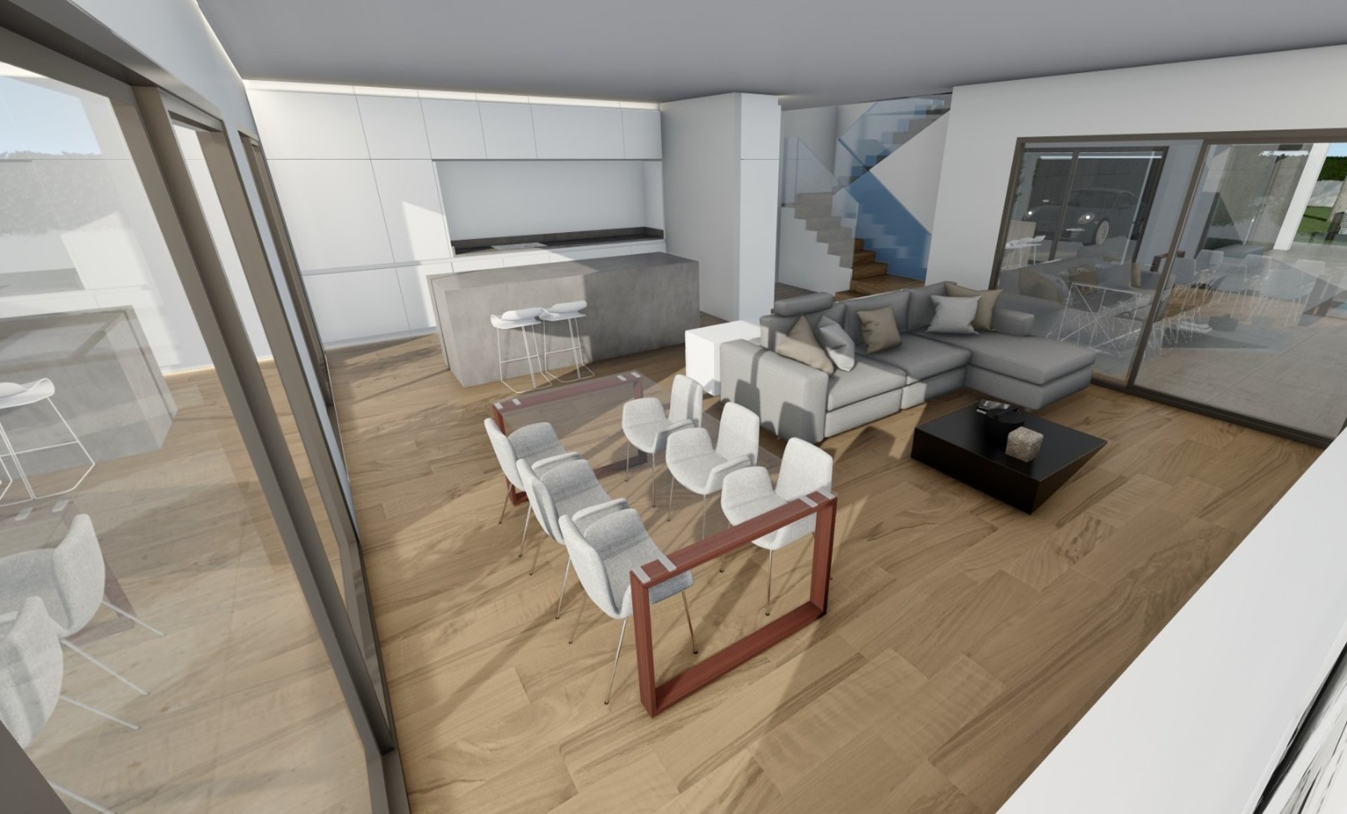 La distribución se diseña aprovechando la luz natural, integrando zonas abiertas y eliminando pasillos innecesarios. Las cocinas abiertas al salón, las terrazas amplias y la conexión interior-exterior crean espacios donde se vive mejor.